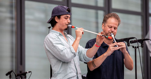 In addition to utilizing the unique sounds of traditional reed instruments, a central goal was to design and build new instruments that would expand on the rich legacy of the double reed. In our research we discovered that much of the sound that had been “tamed” out of the double reed by centuries of musical convention - brilliance, harshness, loudness - had resurfaced as some of the most compelling sounds in contemporary music, from distorted guitars to aggressive synthesizers. We built our instruments (both by hand and via 3D printing) with the goal of harnessing these unique and volatile properties in service of our compositional goals, including detailed microtonal tuning, modular construction, spacial arrangement, and mass audience participation. In the sense that these sounds stand in opposition to much of what is institutionally valued and expected from acoustic wind instruments in the West, we view this practice as an act of revolutionary sonic liberation.